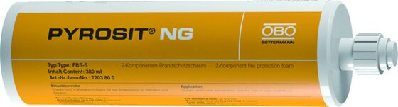 PYROSIT® NG 2-Komponenten Brandschutzschaum in Kartusche, inklusive 2 Mischrohre, zur Erstellung von Kabel- und Kombiabschottungen, Verarbeitung mit Kartuschenpistolen FBS-PH oder FBS-PA, in trockenen, frostfeien Räumen kann die Spachtelmasse bei Temperaturen von +5 °C bis +30 °C bis zu 12 Monate in verschlossenen Originalgebinden stehend gelagert werden