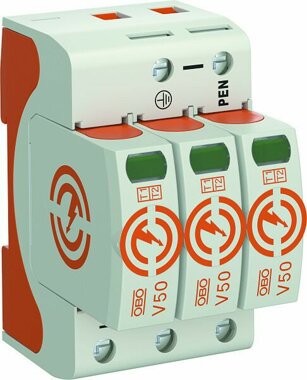 CombiController V50 Blitzstrom-Kombiableiter aus halogenfreiem Kunststoff geeignet für Blitzschutz-Potentialausgleich nach VDE 0185-305 (IEC 62305), mit dynamischer Abtrennvorrichtung und optische Statusanzeige. Besonders ist der CombiController zum Blitzschutz-Potentialausgleich für Gebäude der Blitzschutzklasse III und IV geeignet. Das Blitzstromabableitvermögen beträgt 12,5 kA (10/350) pro Pol und bis zu 50 kA (10/350) gesamt. Die vibrationssichere Verrastung und die Spannungs- sowie Typenkodierung sorgen für Sicherheit und vermeiden Verwechslungen von Ober- und Unterteilen. Durch die keilförmige Ausführung der Kontakte ist ein einfaches Einsetzen und noch einfacheres Entnehmen der Oberteile möglich. Über den auf dem Leistungsschild aufgebrachten QR-Code lassen sich mit Hilfe mobiler Endgeräte schnell und einfach zusätzliche technische Produktinformationen abrufen.