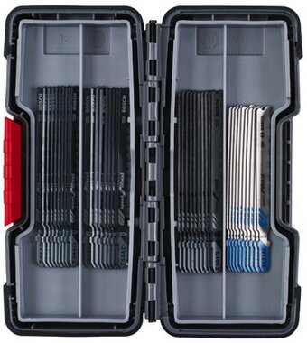 Das 40-tlg. Wood and Metal Stichsägeblatt-Set, Toughbox, ist essentiell für Holz- und Metallarbeiten. Es enthält Blätter, die speziell für gerade und Kurvenschnitte konzipiert ist. Sie machen saubere und schnelle Schnitte in Weichholz, nicht-abrasive Holzwerkstoffe und perforiertes Metallblech.