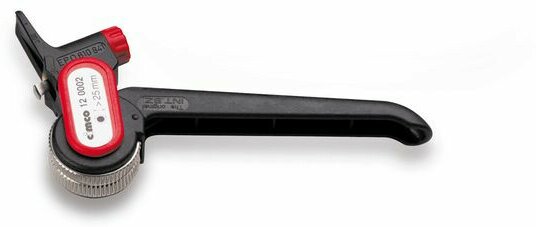 zum Entfernen sämtlicher Isolationsschichten von Kabeln ab 25 mm Ø, z. B. Bleimantel, Gummi, PE, PVC, Schnitttiefe einstellbar von 0,5 - 5 mm, geeignet für Längs- und Rundschnitt, im Kunststoffetui, Messer auswechselbar