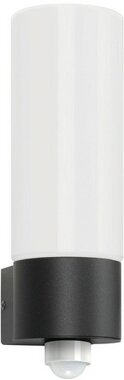 Wandleuchte, Edelstahl anthrazit pulverbeschichtet, Opalglas weiß, Bewegungsmelder ca. 200°, Zeiteinstellung ca. 10 Sek. - 8 Min., Reichweite max. 8 m, ohne Leuchtmittel, 1x E27 max. 100 Watt, BxHXT 11x30x14 cm, IP44
