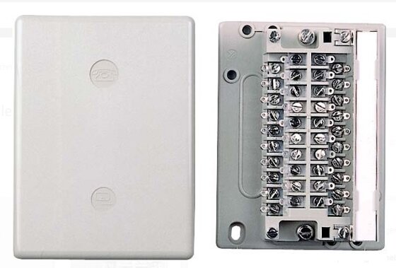 Kunststoff Verteilerkasten, Thermoplastischer Kunststoff (ABS), schlagfest, Kabeleinführung: vorgeprägte Ausbruchmarkierungen an allen Seiten der Abdeckappe und im Sockelboden, mit Grundplatte und Abdeckhaube sowie Befestigungsmaterial, für LSA-Plus 1 Leisten geeignet