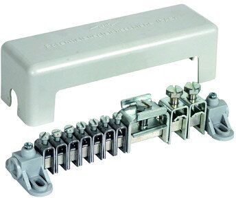 Potentialausgleichsschiene Industrie nach DIN EN 62561-1, für den Schutz und Funktionspotentialausgleich nach DIN VDE 0100 Teil 410/540 und den Blitzschutz-Potentialausgleich nach DIN EN 62305-3 (VDE 0185-305-3). Mit Isolator UP (duroplastisch, rot) mit Gewinde M10, UV-stabilisiert und halogenfrei