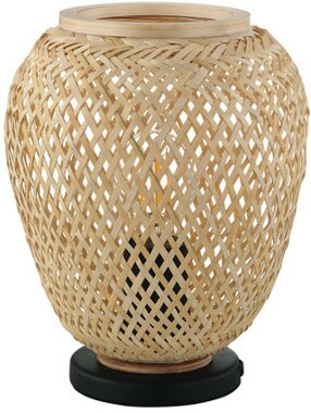TL/1 DEMBLEBY, Tischleuchte, Holzgeflecht, schwarz/natur, mit Schnurschalter, Schutzart IP20, Ø 20 cm, 1x E27 max. 40 Watt