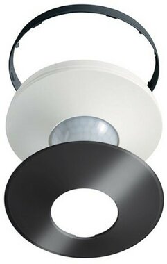 Abdeck-Set in schwarz bestehend aus Abdeckblende und Designring für viele Decken-Bewegungsmelder der Serie COMPACT und Decken-Präsenzmelder der Serie COMPACT.