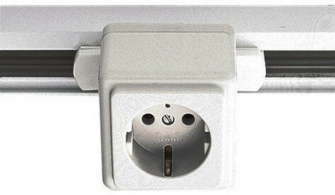 Schienensteckdose für das Hochvolt 3Phasen-Schienen-System, weiß, für den Anschluss von Geräten der Schutzklasse I (System Schuko) bzw. der Schutzklasse II geeignet, inklusive 6,3A Sicherung (träge) in der Schienensteckdose