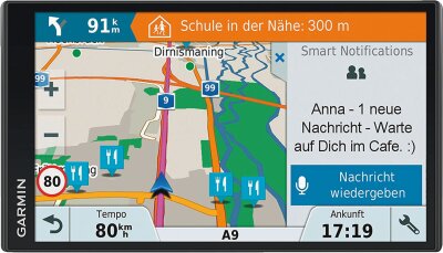 5Zum Empfangen von Smart Notifications auf dem Navi müssen Sie die kostenlose Smartphone Link App herunterladen. Es fallen gegebenenfalls Gebühren im Rahmen Ihres mobilen Datentarifs an. Weitere Informationen zu Daten- und Roaming-Tarifen erhalten Sie bei Ihrem Mobilfunkanbieter. Bluetooth-fähiges Smartphone erforderlich (separat erhältlich).