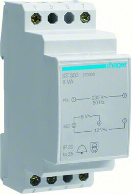 Hager ST303 Klingeltrafo 230V/8+12V 8VA 2PLE