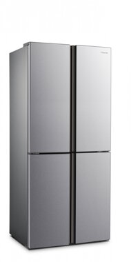 Hisense RQ515N4AC2. Bauform: Freistehend, Produktfarbe: Metallisch, Silber, Design: American door. Netto Gesamtkapazität: 394 l, Klimakategorie: SN-T, Geräuschpegel: 42 dB. Kühlschrank - Nutzinhalt: 265 l. Gefrierfach - Nettokapazität: 129 l, Gefrierfachposition: Unten, Star Bewertung: 4*. Energie-Effizienzklasse: A++, Jährlicher Energieverbrauch: 301 kWh