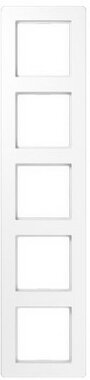 Rahmen 5fach, alpinweiß für waagerechte und senkrechte Kombination für die Serie A 1fach-Rahmen auch für British-Standard-Installationen geeignet (Tragring 80 x 80) Bitte möglichst mit Abdeckungen aus Thermoplast (bruchsicher, hochglänzend) kombinieren. IP20 Material: Thermoplast Maße (B x H): 85 x 369 mm