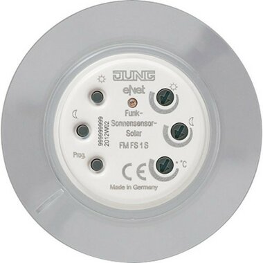 Sensor zur helligkeitsabhängigen Steuerung von eNet-Aktoren Montage auf Fensterscheiben im Innenbereich Produkteigenschaften Löst Szenen beim Über- und Unterschreiten des eingestellten Sonnenschutz- und Dämmerungswertes aus Temperaturabhängiger Sonnenschutz möglich, Szenentasten für Sonnenschutz und Dämmerung, Helligkeitsmessung über Helligkeitssensor, Sendet Helligkeitswerte an eNet-Server bei Helligkeitsänderung von mehr als 50 %, Testbetrieb zum Anpassen von Sonnenschutz- und Temperaturschwellwert Solarversorgtes Gerät, Integrierter Akku als Energiespeicher, Mit eNet-Server einstellbar: Bediensperren, Verhalten von Aktoren bei Aufheben einer Szene, Zusatzfunktionen mit eNet-Server: Update der Gerätesoftware, Fehlerspeicher auslesen