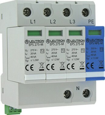 Durchgängig steckbarer Überspannungsableiter Typ 2 für dreiphasige TT- und TNS-Systeme.