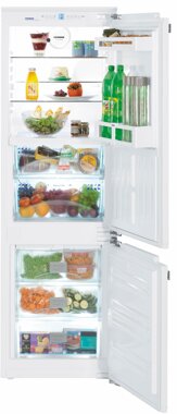 Die integrierbare ICBN 3314-20 Einbau-Kühl-/Gefrier-Kombination mit EEK: A++ von Liebherr bietet einen großen Innenraum für unterschiedliche Lebensmittel. Die SuperFrost-Automatik ist zeitgesteuert und schafft eine Kältereserve für vitaminschonendes Einfrieren. Für eine tolle Übersicht und ausgezeichneten Beladungskomfort sorgt eine VarioSpace Funktion mit 2 Türregalen, 2 breiten Obst- und Gemüsefächern und 4 kompakte Ablageflächen. Auf dem LED-Display mit Magic-Eye wird die Kühltemperatur digital angezeigt. Im Gefrierbehälter befinden sich 3 große NoFrost Gefrierfächer. Anhand dieser NoFrost Funktion, die eine Eisbildung verhindert, müssen Sie nie wieder Ihr Gefrierfach abtauen. Bei Störungen ertönt ein akustisches und optisches Warnsignal und die Lagerzeit wird auf 20 Stunden gesetzt. Die ICBN 3314-20 Einbaukombination verfügt über eine PowerCooling und SuperCool Option. Dank dieser Optionen werden eingelagerte Lebensmittel schneller abgekühlt und die Kühltemperatur gleichmäßig im Innenraum durch einen integrierten Ventilator verbreitet. Die 2 modernen BioFresh-Safes im Hydro- und DrySafe sorgen für ein fabelhaftes Klima und eine sehr lange Frische.