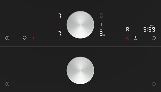 - Automatische verzögerte Abschaltung nach dem Kochen, um Restgerüche nach dem Kochen zu beseitigen (in spezifischer ultra-geräuscharmer Ventilatorstufe, 12min (Abluft), 30min (Umluft), manuell abschaltbar)