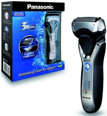 3-fach-Scherkopf (10.000 Schwingungen/Min.), nanopolierte 30° Klingen für eine besonders hautnahe, präzise und unwiderstehlich glatte Rasur und weniger Hautirritationen, ultraflexibler Scherkopf, ausschiebbare Präzisionstrimmer, 100 % wasserdicht für Nass- und Trockenrasur, mit oder ohne Rasiergel, Li-Ionen-Akku, Betriebsdauer 54 Min., Ladezeit 60 Min., 5-stufige LED-Anzeige, Aufbewahrungsbeutel, hochwertige Edelstahlfront mit gummierten Seiten.