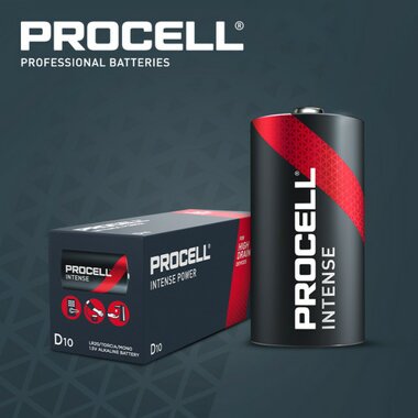 Procell Alkaline Intense Power Industriebatterien wurden speziell entwickelt für eine längere Lebensdauer (im Vergleich zu früheren Procell Alkaline AA-Batterien) in professionellen Geräten mit hohem Stromverbrauch, die eine hohe Leistung oder Leistungsspitzen benötigen, wie z. B. elektronische Türschlösser, Seifenspender oder Überwachungskameras. Erhältlich in den Größen AA, AAA, C, D und 9 V.
