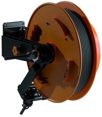 Voll-Kunststoff-Konstruktion, elektrisch schutzisoliert, Schutzart IP44, korrossionsbeständig, Spiralfederantrieb für ca. 30.000 Arbeitsspiele, mit schwerer Gummischlauchleitung, ohne Steckvorrichtungen, mit abschaltbarer Kabelarretierung, mit schwenkbarer Wandhalterung.