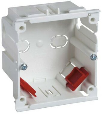 Geräteeinbaudose 1-fach inkl. 2 Zugentl. c/c60mm, F80-Frontöffnung VPE 10Stück MIB-A1. Einzel- Geräteeinbaudose mit Zugentlastungszubehör. Geeignet für den Einbau von Standardzubehör in Installationsträger mit F80-Front. Kann mit Abzweigdose MIB-J kombiniert werden. Material: PC/ABS.