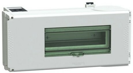 Canalis KSA. Abgangskasten für Reiheneinbaugeräte. KS Abgangskasten, leer, 12 Teilungeinheiten. Nennstrom 100 A, Polzahl 3L+N+PE. Kunststoff, RAL 9001. Schutzart IP 55. und sprinklergeprüft. Anzahl der Leiter 3L + N + PE.