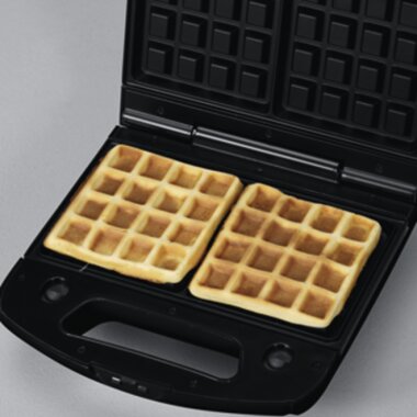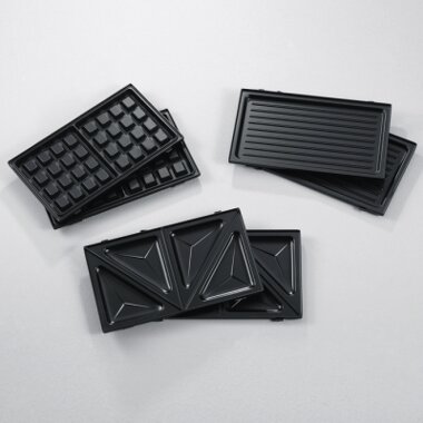- 3 auswechselbare, antihaft- beschichtete Platten: Sandwichplatten, Grillplatten, Brüsseler-Waffelplatten