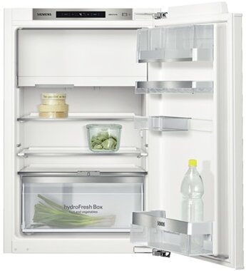 Siemens KI22LAD30. Bauform: Eingebaut, Produktfarbe: Weiß, Türanschlag: Rechts. Netto Gesamtkapazität: 124 l, Klimakategorie: SN-ST, Geräuschpegel: 37 dB. Kühlschrank - Nutzinhalt: 109 l, Lampentyp: LED. Gefrierfachposition: Oben, Gefrierfach - Nettokapazität: 15 l, Gefriervermögen: 2,4 kg/24h. Energie-Effizienzklasse: A++, Anschlusswert: 90 W, Jährlicher Energieverbrauch: 149 kWh