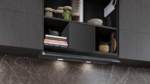 - Für den Einbau in höhere Oberschränke sind Kaminverlängerungen als optionales Zubehör erhältlich.
