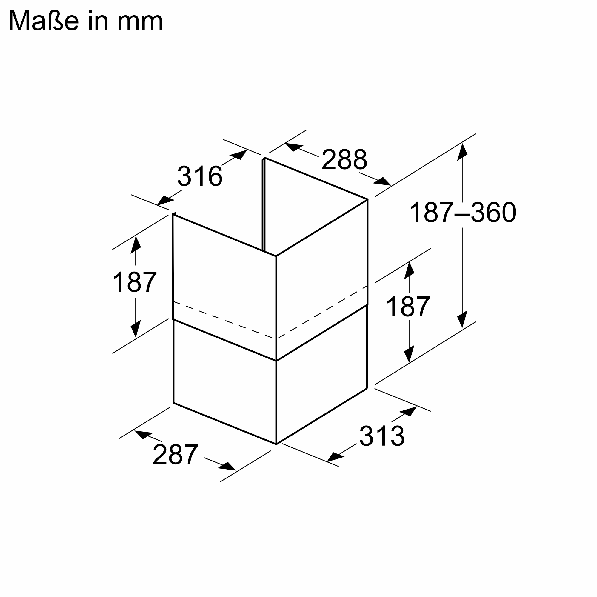 Sonderzubehör- Kaminverlängerung 187-360 mm für die integrierte Designhaube.