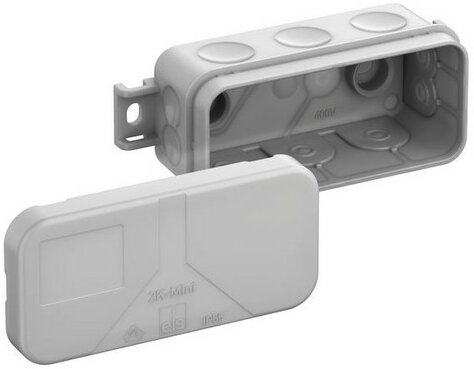 Abzweigdose, mit Schutzart IP55, Nennquerschnitt 2,5mm², Ui=400V AC, zertifiziert durch VDE (DIN EN 60670-1/-22 (VDE 0606-1/-22)), selbstdichtende, weiche Einführungsmembranen, Dichtbereich 2-14mm, (1 rückseitig, 10 seitlich), außenliegende Befestigungsstellen, für Standardinstallationen im Innenbereich, grau, ohne KlemmenAbmessungen: 89 x 43 x 38mm