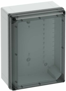 Leergehäuse-Industrie Qualität, geeignet für die Installation in rauen Umgebungen und im ungeschützten Außenbereich, Kasten: glasfaserverstärktes Polycarbonat, grau, ähnlich RAL 7035, Deckel: Polycarbonat, mit transparentem DeckelAbmessungen: 300 x 400 x 180mm