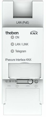 Schnittstelle IP und KNX, Unterstützung von KNX IP Secure, Entspricht den Vorgaben des KNXnet/IPStandards, Tunneling: 5 Tunnelingserver verfügbar (Visualisierung, App?), Firmware-Update möglich (Theben IP Tool Software), Spannungsversorgung: 12?30 V DC/, PoE - IEEE 802.3af class 1