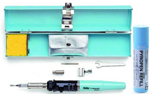 Selbstzündend (Piezo), Vergleich zu elektrischer Leistung 20 - 80 Watt. Eine Füllung reicht ca. 2 Stunden / Füllmenge 28 ml, Temperaturbereich löten: 350°C ? 500°C, Heißgas: ~ 650°C, Metallbox mit Lötkolbenablage, Reinigungsschwamm und hitzebeständiger Zubehörtasche, Leergewicht 100 g